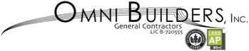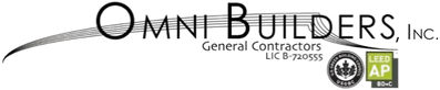 Omni Builders is a member of the USGBC and is certified as a LEED Associate. We build Green. LEED* AP and the related acronym, and the LEED* AP logos are trademarks owned by U.S. Green Building Council and awarded to individuals under license by the Green Building Certification Institute (GBCITM)